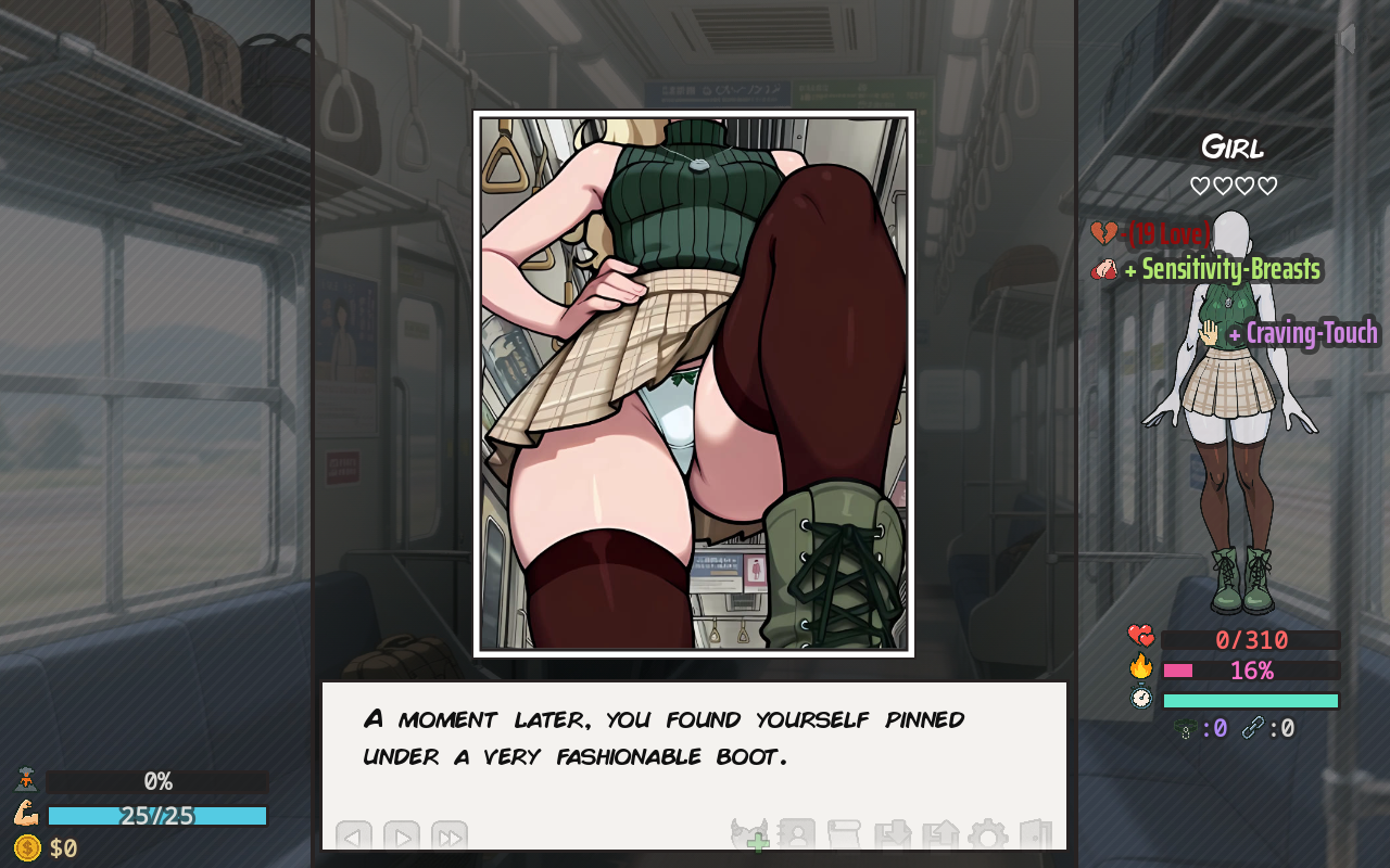 - Fixed: ‘grope ass’ was accidentally set to same difficulty as ‘hug’ (oops)